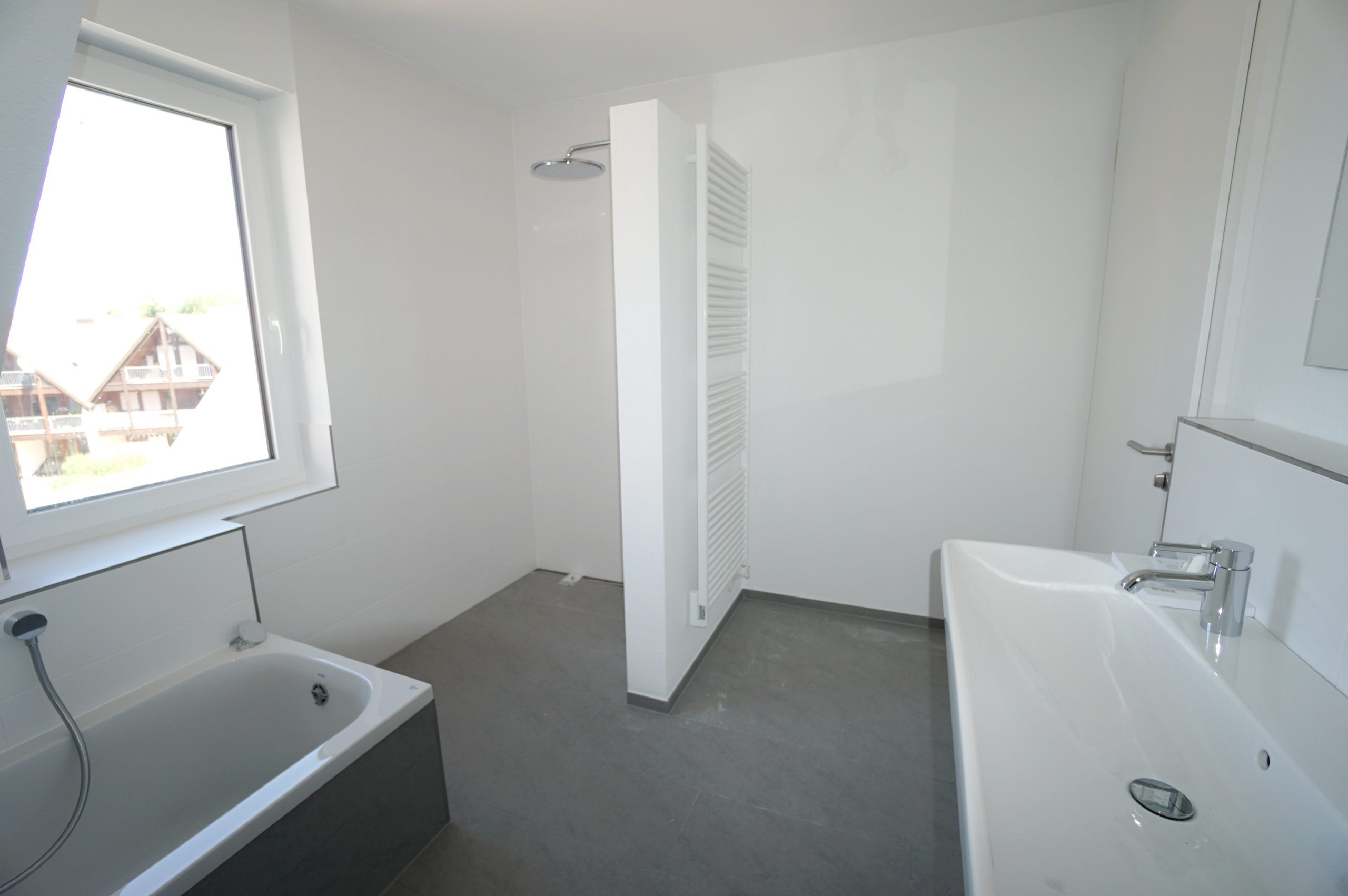 -Attraktives Hauptbad -Tageslicht- mit bodenebener Dusche, Wanne, Doppelwaschtisch