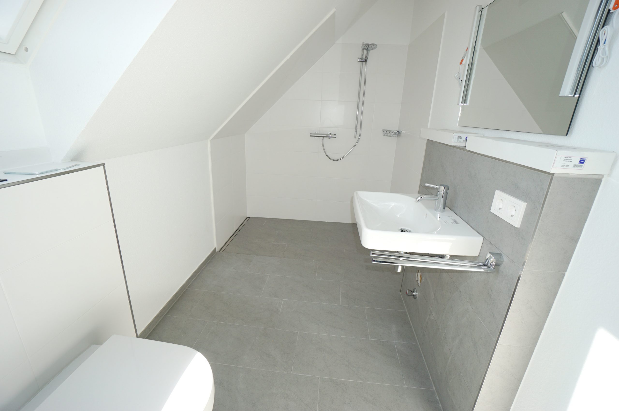 -Gästebad -Tageslicht- mit großer Dusche und WC