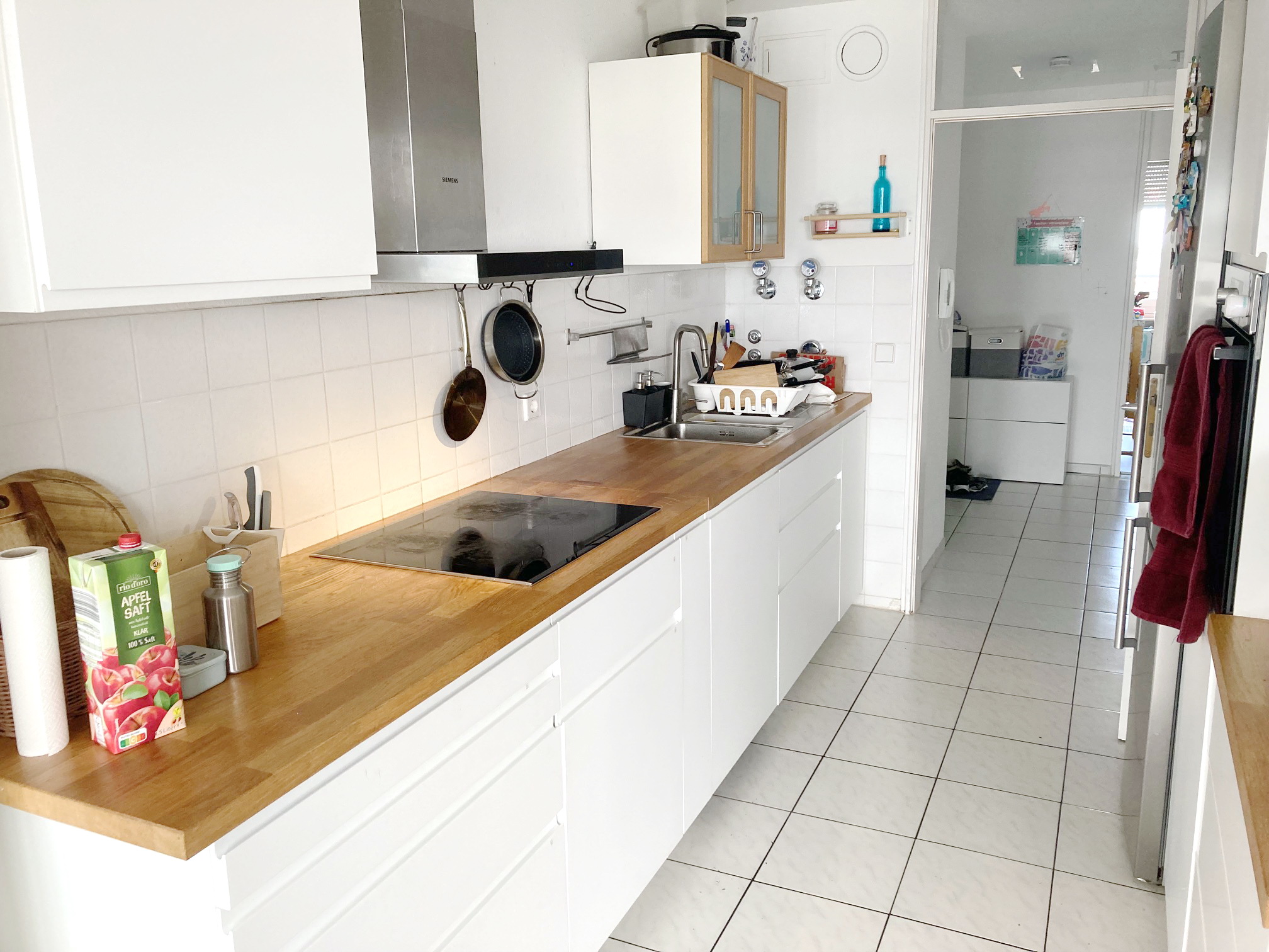 -Einbauküche (ca. 6 Jahre alt) mit hochwertigen Bosch-Geräten: Geschirrspüler, Backofen, Induktionskochfeld – ohne Kühlschrank